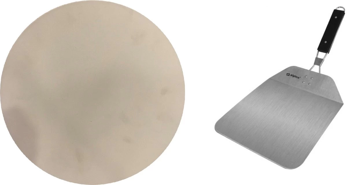 Taille : diamètre 36 cm, épaisseur 5 cm. Matière: céramique. Va au lave-vaisselle: Non, le lavage à la main est recommandé. Bien sécher avec un torchon. composé de 1x pelle à pizza en acier inoxydable pliable 25 x 24 cm, 1x pierre à pizza en céramique pour le barbecue 36 cm