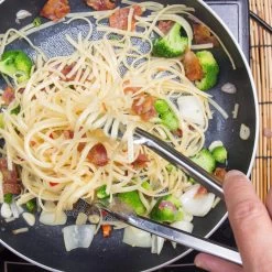 Les pinces à spaghetti en acier inoxydable d’ Orange85 sont l’outil idéal pour la cuisine. Les pinces peuvent être utilisées pour ramasser des pâtes ou des légumes. Le matériau de la pince est en acier inoxydable et convient donc au lave-vaisselle. La longueur de la pince est de 23 cm.