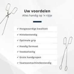Retournez vos morceaux de viande, poisson, volaille et brochettes facilement et en toute sécurité sans abîmer le produit grâce à ces pinces à barbecue professionnelles. Les pinces à gril Veluw conviennent aux températures élevées, ce qui les rend parfaites pour une utilisation comme pinces à barbecue. Une excellente pince à BBQ pour les vrais amateurs de barbecue !