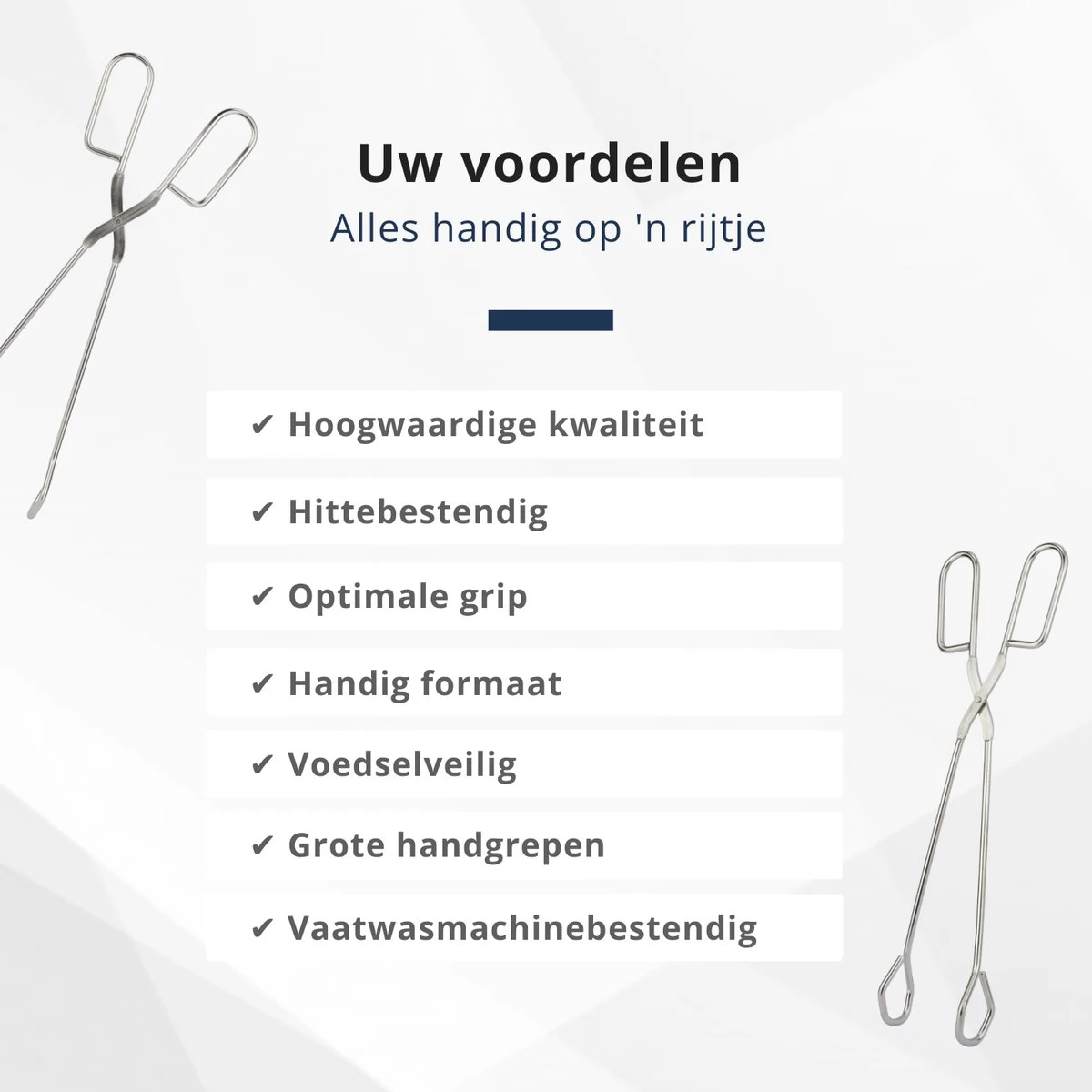 Les pinces de cuisine Veluw sont entièrement fabriquées en acier inoxydable de haute qualité. Cela rend la pince adaptée à une utilisation quotidienne intensive dans les cuisines professionnelles. Le chef amateur à la maison aime aussi utiliser les pinces dans la cuisine.
