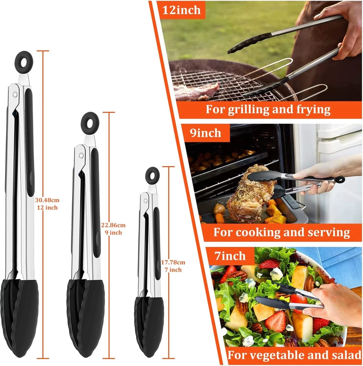 - 【LANGUES DE CHEF PROFESSIONNEL Le paquet de Small 7″, Medium 9″, Large 12″ est parfait pour tous vos besoins, servant pour la cuisine, le barbecue, le buffet, la salade, la crème glacée, le pain.