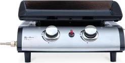 Plancha Au Gaz 2 Banderoleuses – Porthos – 5 KW, Barbecue, Cuisine Extérieure, Plaque émaillée, Acier Inoxydable. Y Compris Le Connecteur De Gaz G1 / 2