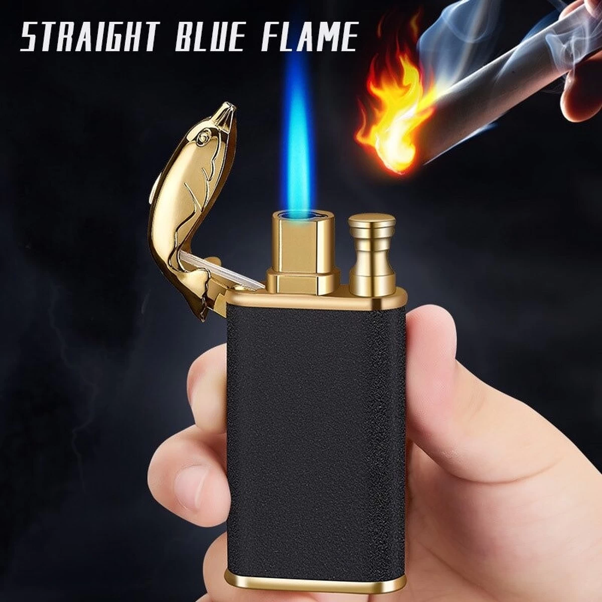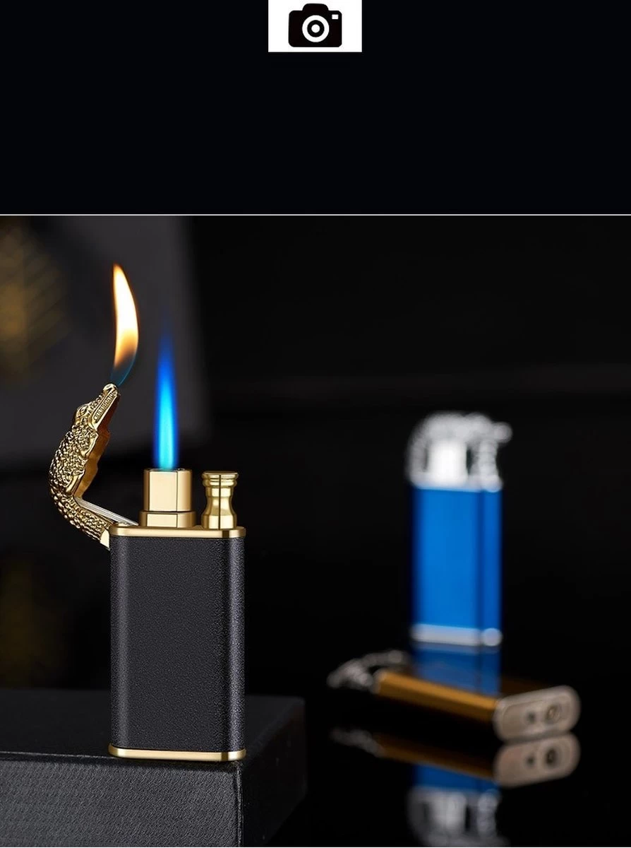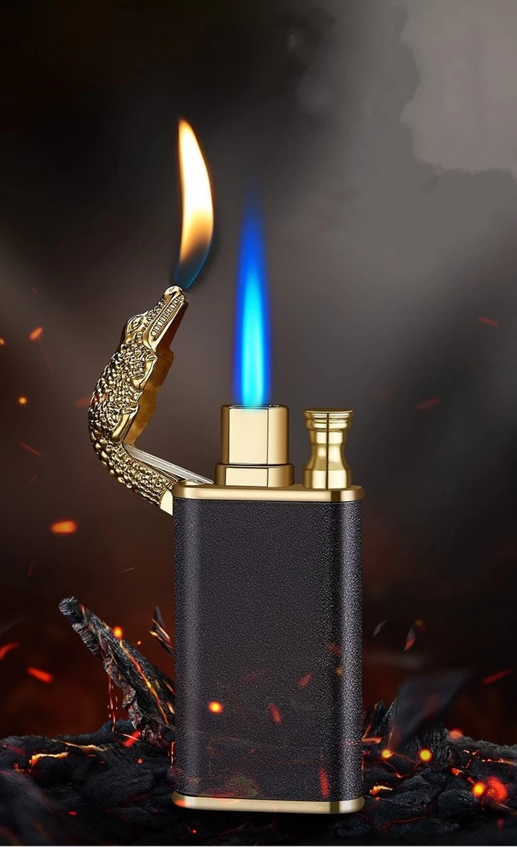 PlayElecGadget – Briquet Flamme MĂ©tal Crocodile Double Feu Briquet Creative Direct Coupe-Vent Flamme Ouverte Conversion Briquet