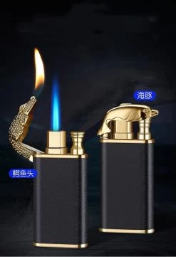 Hot Métal Crocodile Dolphin Double Fire Briquet Créatif Instantanément Coupe-Vent Allume-cigare de conversion à flamme nue pour hommes qui fument