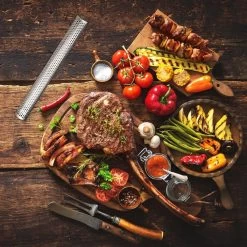 Quand la bouche a dĂ©jĂ l’eau, quand vous pensez au bon goĂ»t, vous vous amuserez beaucoup avec le bar Ă fumĂ©e en acier inoxydable. Son utilisation est très simple: placez le tube de fumage horizontalement sur le barbecue. Ensuite, remplissez-le de copeaux de fumĂ©e sur des granulĂ©s puis allumez-le. Les nombreux trous garantissent que la fumĂ©e est uniformĂ©ment rĂ©partie dans le gril – c’est un net avantage par rapport aux fumoirs. Un sac de transport pratique est inclus dans la livraison pour vous permettre d’emporter facilement l’accessoire du gril avec vous. Bar Ă fumĂ©e en acier inoxydable en dĂ©tail – Dimensions H x P: environ 30 x 3,8 cm – Dimensions de l’ouverture: environ 1,6 et 2,2 cm – MatĂ©riau: acier inoxydable – Poids: environ 85 g Tube fumoir pour un goĂ»t dĂ©licieux – Griller la viande avec savourez une saveur fumĂ©e savoureuse – Convient pour un barbecue Ă gaz, Ă boules ou Ă charbon de bois – RĂ©partition uniforme de la fumĂ©e – Avec sac de rangement Contenu de la livraison – 1 x tige Ă fumĂ©e – 1 x sac – La dĂ©coration n’est pas incluse dans la livraison