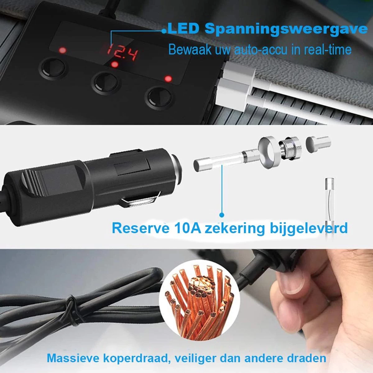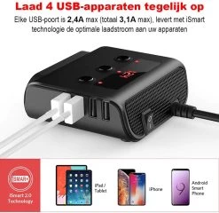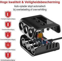 Notre répartiteur avec 3 prises et 4 ports USB garantit que pas moins de 7 appareils différents peuvent être chargés en même temps. De cette façon, votre navigation n’échouera pas soudainement pendant votre voyage en voiture et vous pourrez continuer à profiter de votre musique préférée tout en conduisant.
