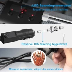 - PAS de surchauffe – Grâce à la protection interne contre la surchauffe, vous n’avez pas à vous soucier des chargeurs cassés ou d’un incendie dans la voiture. Tout est protégé et contrôlé selon les normes.