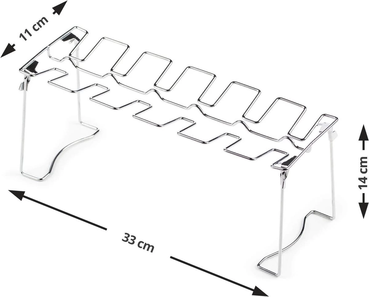Le support d’ailes de forgeron Rosmarino durable et de haute qualitĂ© est fabriquĂ© en acier inoxydable rĂ©sistant Ă la chaleur et est conçu pour cuire et servir 12 ailes ou pilons. Grâce Ă sa conception pratique, la viande reste en place pendant la cuisson et vous n’avez pas Ă retourner la viande.