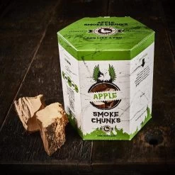 Donnez à vos plats une belle saveur de fumée sucrée avec ces morceaux de Apple . Se compose à 100% de bois de pommier européen. Placez un ou plusieurs morceaux entre les charbons ardents et laissez-les brûler progressivement pendant la cuisson au barbecue. BBQ comme un pro et continuez à fumer!