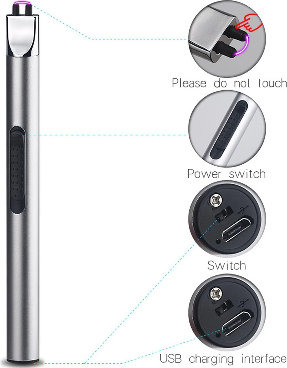 Lebriquet électrique estRechargeable par USB †De cette façon, vous avez toujours un briquet prêt à l’emploi à portée de main pour allumer des allume-feu, un barbecue, des bougies ou la cuisinière. Et aucun gaz ou flamme n’est impliqué! Pratique et sûr.