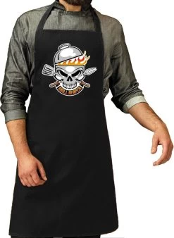 Tablier de barbecue grill reaper / tablier de cuisine noir pour homme. Ce tablier est imprimĂ© avec le texte : Grill reaper. Avec une image d’un barbecue de crâne. MatĂ©riel: 65% polyester / 35% coton. Taille unique : largeur 72 cm, longueur 86 cm. QualitĂ© : 195 grammes.