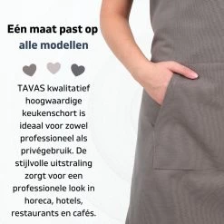 Le tablier TAVAS convient non seulement à la cuisine, mais aussi au barbecue, à la restauration, à la peinture ou à un autre passe-temps. Le tablier est disponible en différents modèles, il y en a donc pour tous les goûts.