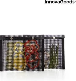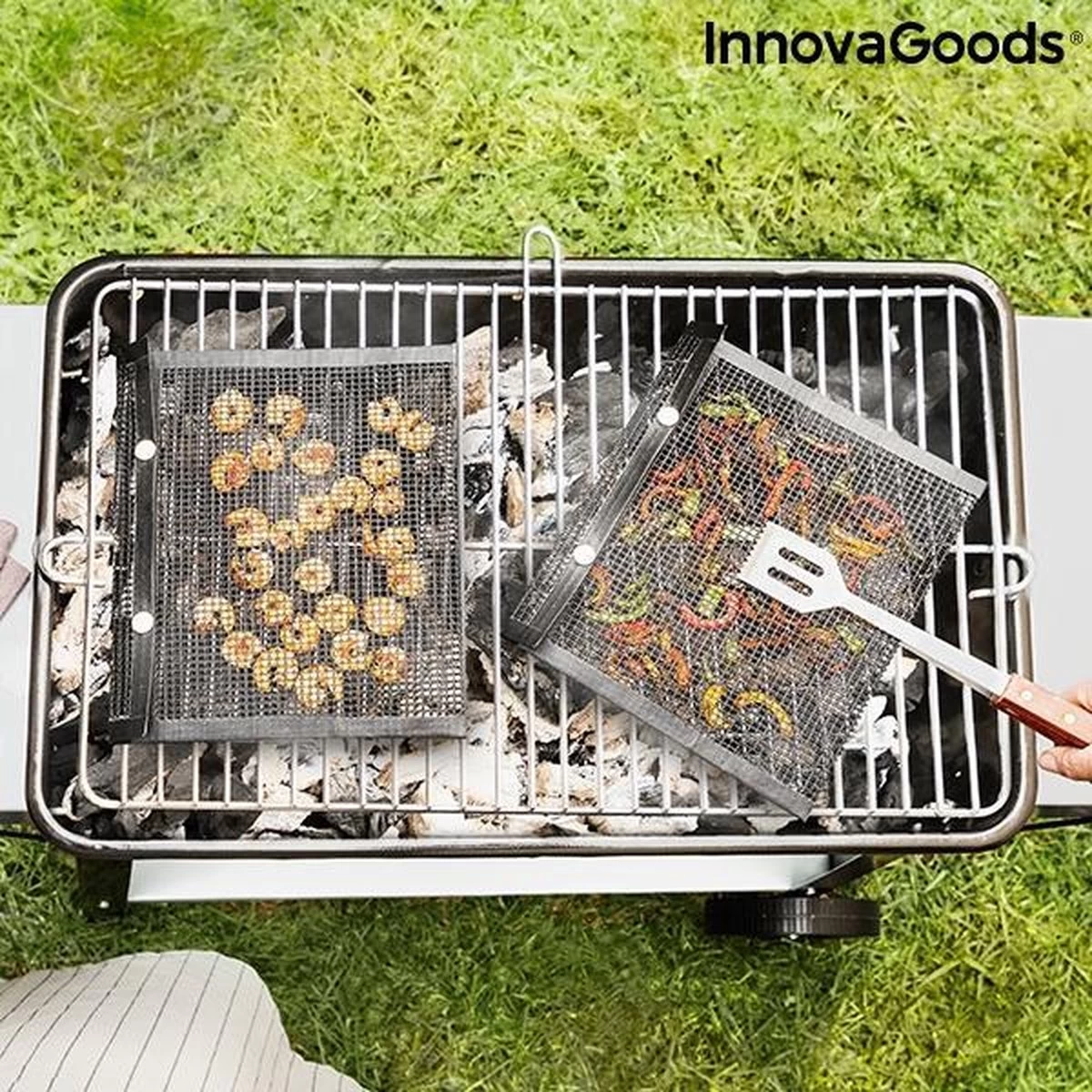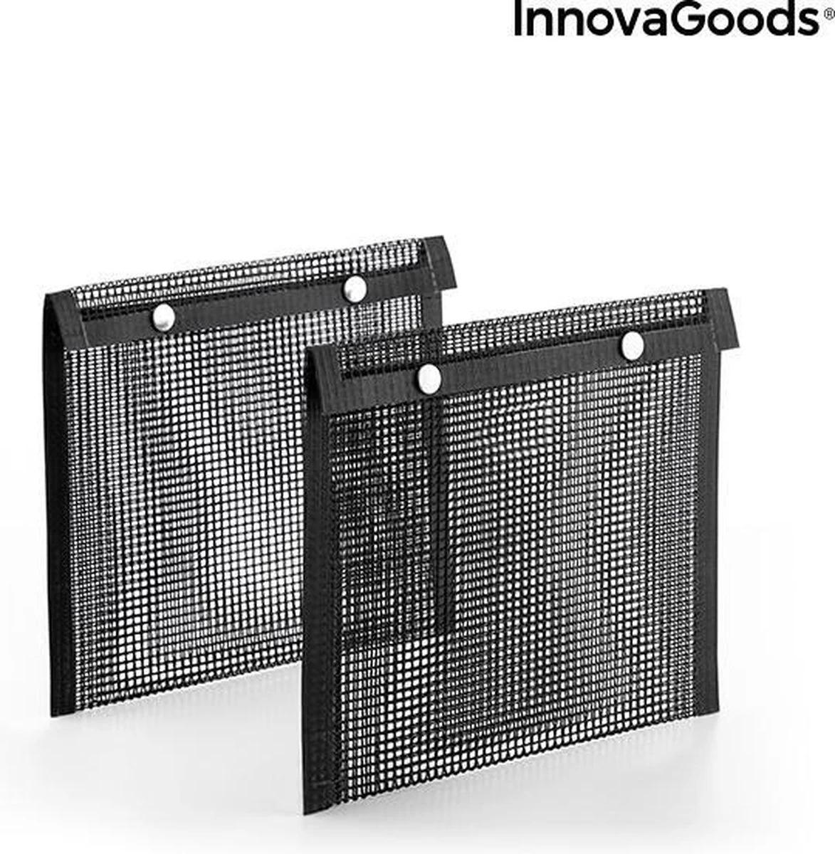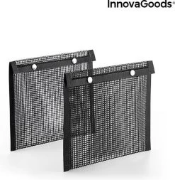 Un ensemble de 2 sacs pour barbecue, parfait pour griller des lĂ©gumes et autres petits aliments sans qu’ils ne collent ou ne tombent en flammes et ne brĂ»lent. Ils sont très pratiques et faciles Ă utiliser, il vous suffit de placer les aliments dans le sac et de les mettre sur la grille du barbecue (jamais directement sur les flammes). La nourriture cuit mieux et a un meilleur goĂ»t lorsque la fumĂ©e pĂ©nètre dans le filet. Retournez simplement les sacs pour cuire l’autre cĂ´tĂ©. Parce que les aliments sont dans les sacs, les aliments ne se rĂ©pandront pas ou ne tomberont pas dans le feu pendant la cuisson, et une fois cuits, ils peuvent ĂŞtre facilement retirĂ©s grâce au matĂ©riau antiadhĂ©sif. Les sacs sont Ă©galement faciles Ă nettoyer au lave-vaisselle. Une façon plus hygiĂ©nique et efficace de prĂ©parer les aliments sur le barbecue.