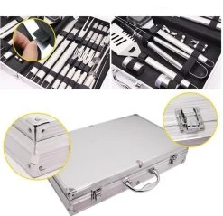 | Contenu de l'emballage | 1x grand clip de poignée 1x pelle multifonction 1 x couteau à grand manche 4x couteau à steak 1 x fourchette à grand manche 4x fourchette à steak 4x brochettes de barbecue 6x fourche à maïs 1 x poivrière 1 x salière 1 x brosse en silicone 1 x Brosse de nettoyage |