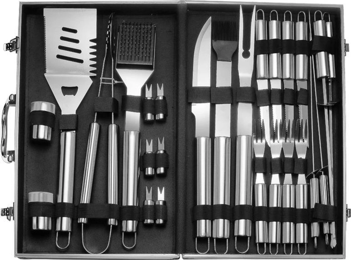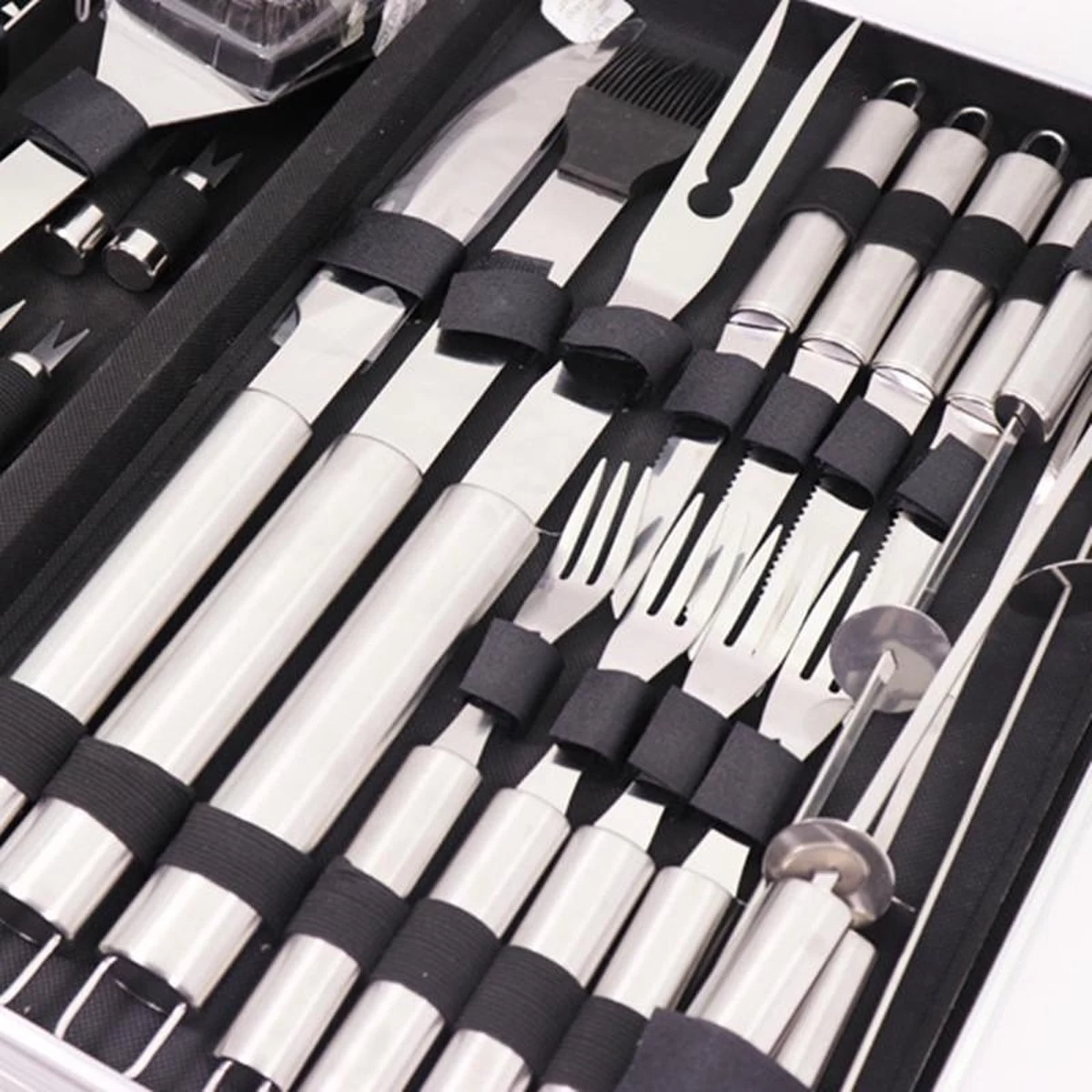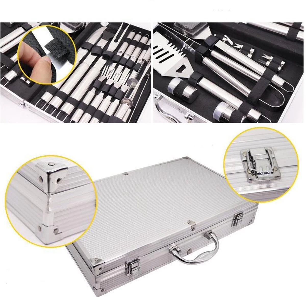TDR-RVS Ensemble D’outils De Barbecue De Luxe BBQ 26 Pièces – Accessoires De Vêtements Pour Bébé Barbecue Avec étui