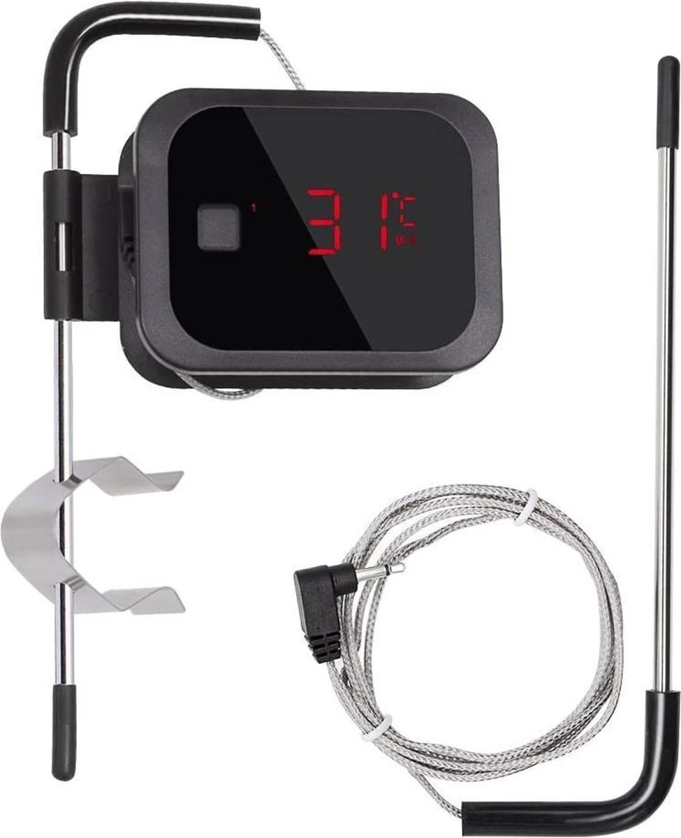 Tout amateur de viande et / ou de poisson en rêve: un morceau de viande ou de poisson juteux du barbecue qui a le summum de la cuisson ou de la cuisson. Ce thermomètre de grill numérique sans fil Bluetooth avec 2 capteurs séparés vous permet d’obtenir les meilleurs résultats sur le barbecue avec de la viande et du poisson avec peu d’expérience. La température à cœur peut être entièrement contrôlée et même avec une application dans le confort de votre maison! Vous pouvez passer tout votre temps avec vos invités au lieu d’être constamment occupé par le barbecue et la cuisson du plat.