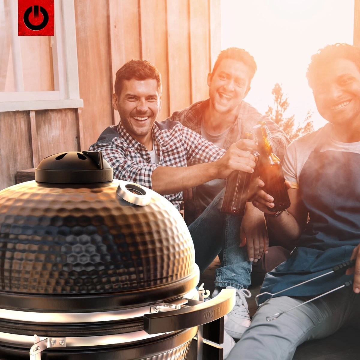 Il est temps de profiter d’un barbecue dans le jardin, mais vous n’arrivez pas à faire cuire les plats parfaitement ? Puis le Kamado Céramique de VOLT ! exactement la cuisine d’extérieur dont vous avez besoin. La VOLTE ! Les kamado sont de qualité industrielle et chaque plat sera donc parfaitement préparé. Nous livrons le Kamado Plug & Play . Cela signifie inclure de nombreux accessoires et accessoires de BBQ Kamado, pour que vous puissiez vous déchaîner tout de suite !