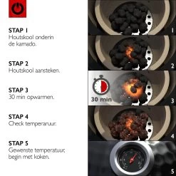 Non seulement en été sont nos VOLT! Grilles de Grenade à utiliser. Nous vous recommandons d’utiliser les différents styles de cuisson tout au long de l’année. Nos Kamados prennent tout leur sens à chaque saison. Pensez à un ragoût de gibier en hiver, un poisson fumé au printemps, un hamburger grillé à la flamme en été et une pomme de terre au four avec des légumes en automne. Avec l’entrée et la sortie d’air réglables, la température et la « puissance » peuvent être idéalement réglées par plat.