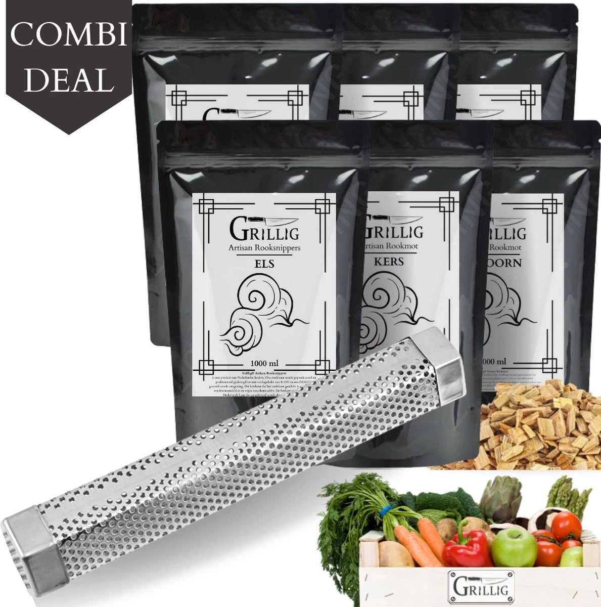 Whimsical – Artisan Large – Smokertube – 6 Types De Copeaux De Fumée – Bois De Fumée Pour Fumer à Chaud – Chêne – Hêtre – Aulne – Cerisier – Esdoorn – Hickory – 12 Litres